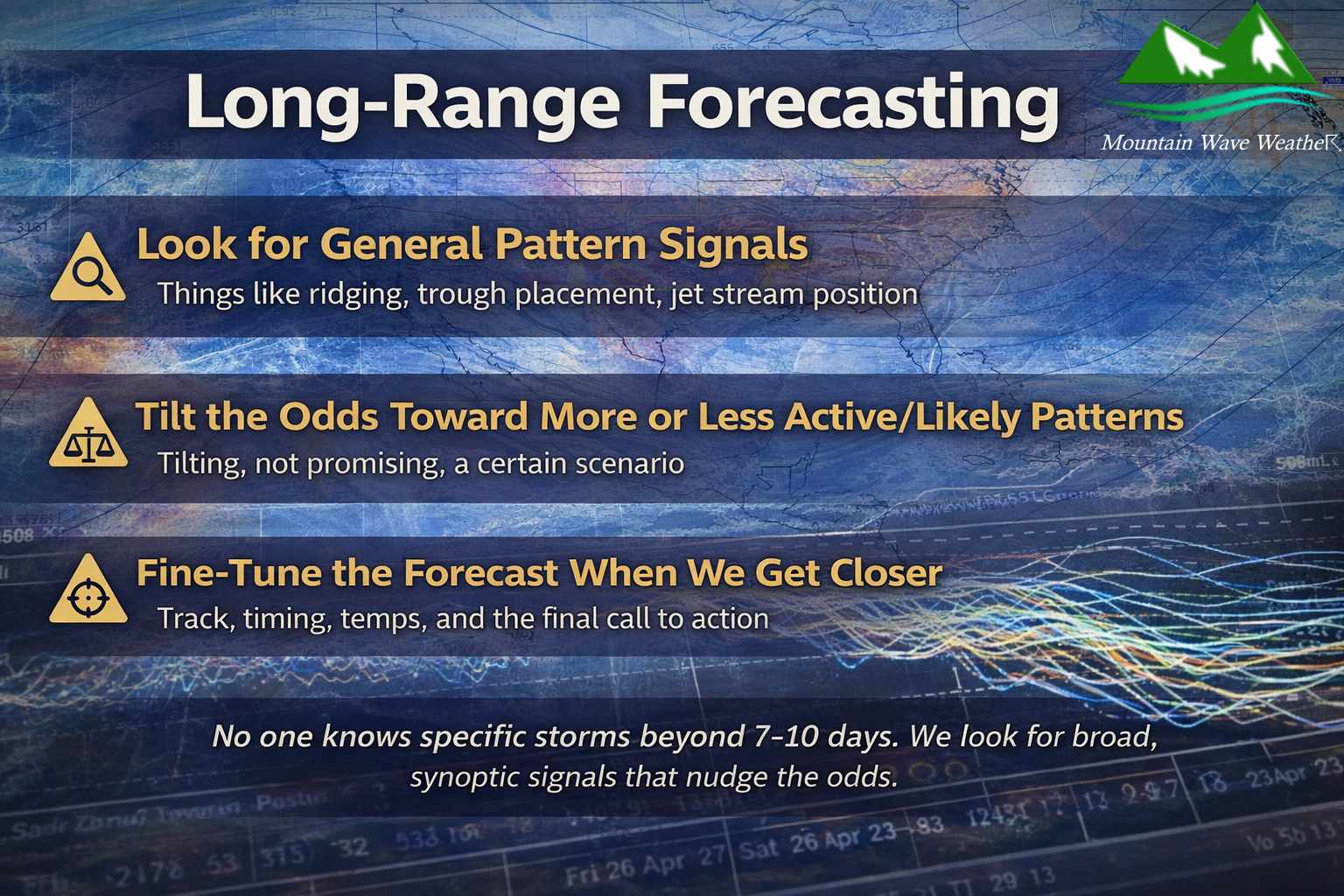 These longer-range outlooks help us tilt the odds toward one scenario or another. Then, as we get closer and models start resolving finer-scale details, that’s when an experienced forecaster can refine the picture; track, timing, temperature profiles, and issue something you can actually plan around.
